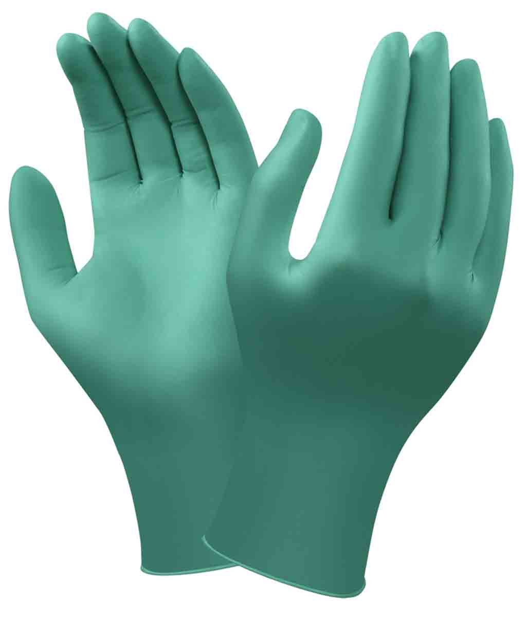 This is TouchNTuff Green Powder-Free Nitrile Disposable Gloves Size 7.5-8 Medium Food Safe 100 per Pack manufactured by Ansell. The manufacturer part number is 92600080. Additionally, its glove is made using nitrile material . It includes a powder free type glove . Anti-Static Options - no. It includes 100 gloves . It has a decent green colour. It features 92-600 range. It is complies with en iso 374-1, en iso 374-5, iso 18889 European safety standard . It is powder-free . It is food safe yes . The glove has a 7.5-8, medium size. It has 1.5 accepted quality level AQL .