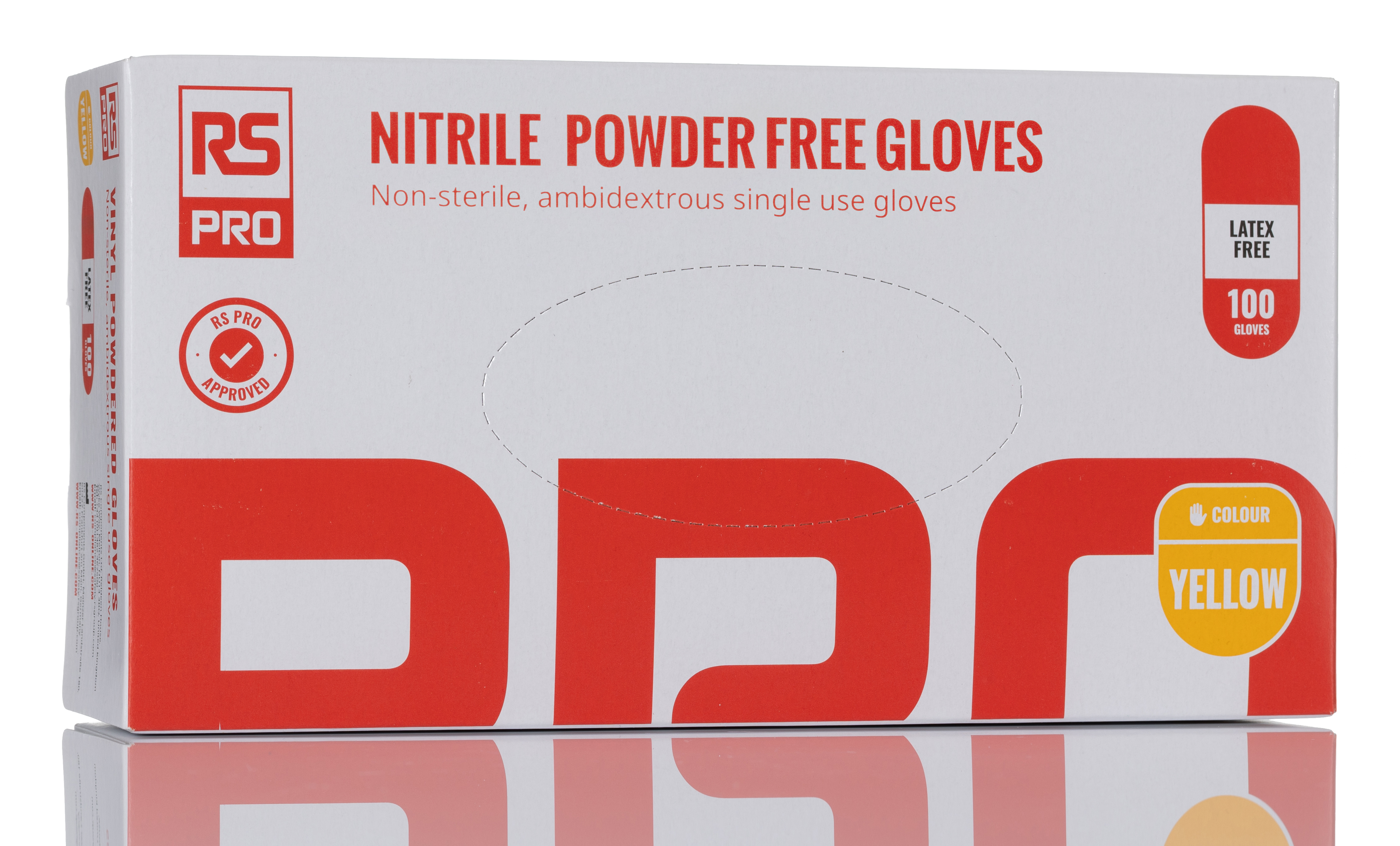 This is Yellow Powder-Free Nitrile Disposable Gloves Size M Food Safe 100 per Pack manufactured by RS PRO. The manufacturer part number is G1182. Additionally, its glove is made using nitrile material . It includes a minimal risk type glove . It includes 100 gloves . It has a decent yellow colour. It is powder-free . It is food safe yes . The glove has a m size.