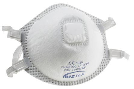 This is FFP3 Disposable Face Mask Valved Adjustable Nose Clips manufactured by RS Pro. The manufacturer part number is 918-5816. Additionally, the product is designed with cup Style. It has an adjustable nose clip yes . In addition, it is moulded yes . It is valved yes . It has a decent white colour. It has a/an ffp3 protection rating .