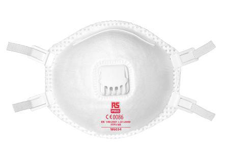 This is Disposable Respirator FFP3 Valved manufactured by RS PRO. The manufacturer part number is 184-5973. It is of respiratory protection category . Additionally, the product is designed with cup Style. It has an adjustable nose clip yes . It is valved yes . It has a decent white colour. In addition, it is moulded yes . It has a/an ffp3 protection rating .