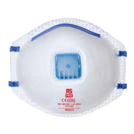 This is Disposable Face Mask FFP2 Valved manufactured by RS PRO. The manufacturer part number is 184-5972. It is valved yes . It is of respiratory protection category . It has a decent white colour. In addition, it is moulded yes . It has a/an ffp2 protection rating .