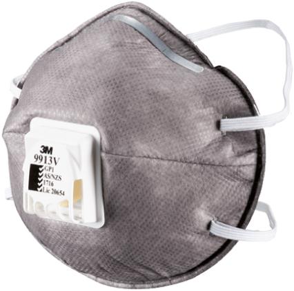 This is Disposable Respirator for Nuisance Odour Protection FFP1 Valved Moulded 10 per Package manufactured by 3M. The manufacturer part number is 9913V. It is of nuisance odour category . It has an adjustable nose clip yes . The product complies with all safety standards, such as en 149:2001+a1:2009. It is valved yes . The product 9900, is a highly preferred choice for users. It has a decent grey colour. It contains 10 item per package . It is moulded . Safety glasses included no . It has a/an ffp1 protection rating .