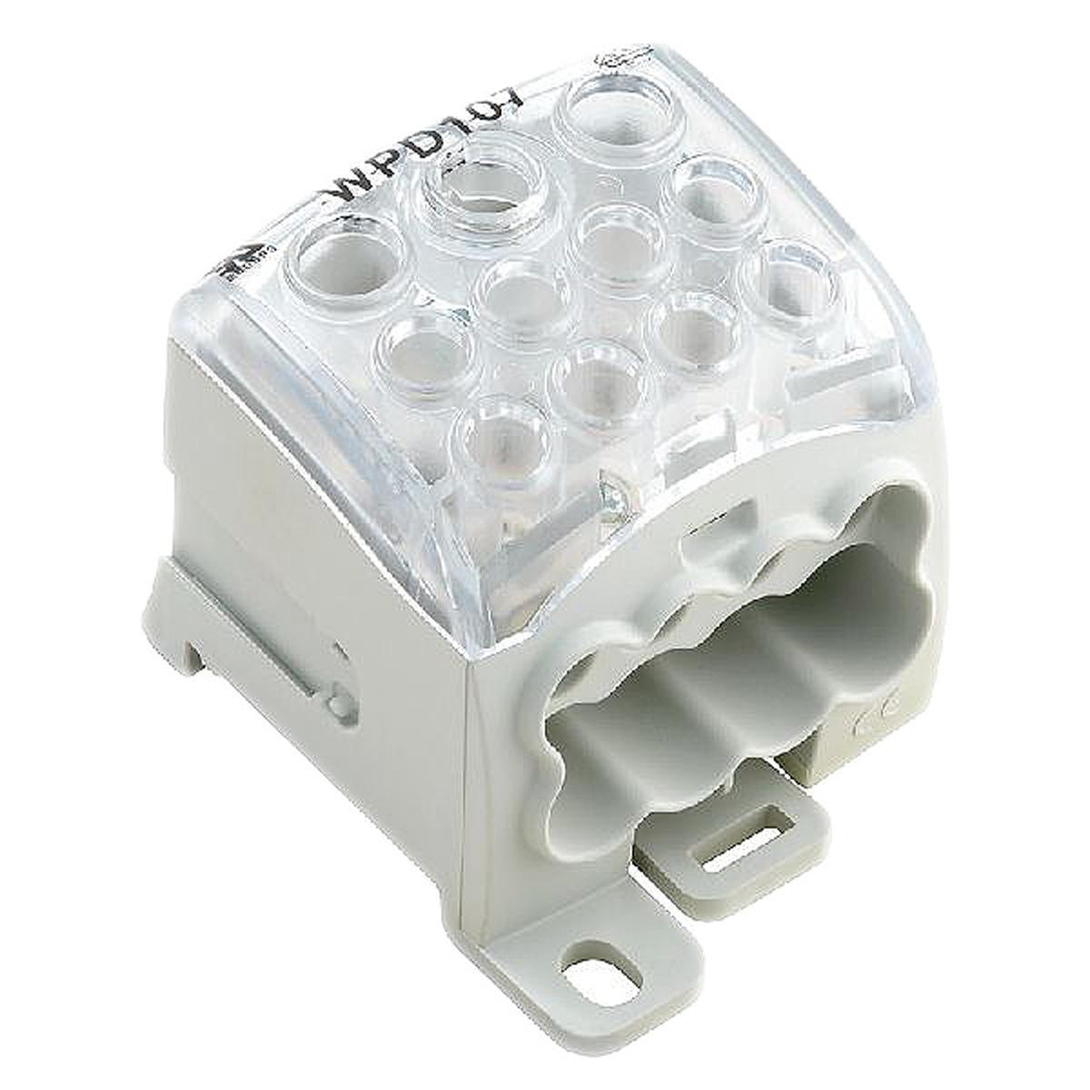This is manufactured by Weidmuller. The manufacturer part number is 1562220000. The product has a current rating of 192a. Whereas, the minimum operating temperature of the product is -50°c. Moreover, the product has a nominal 1 kv ac/dc, 600 v voltage rating. It has a decent grey colour. In addition, the height is 73mm. The product also features robust wemid housing material. Furthermore, the product is 54.5mm wide. Its accurate length is 52.5mm. It comprises 8 ways. It allows screw termination method. The cross section area of the cable includes 25 mm², 35 mm², 95 mm². Concerning wire's size, it is 6 awg. It has a maximum operating temperature of +130°c. The load side has screw connection. Furthermore, per pole contains 8 load side connections. It features 1 pole power distribution block 232a 1000v. It also exhibits voltage rating of 1000v. The product w, is a highly preferred choice for users. It has typical 8 weeks of manufacturer standard lead time. It has equipped with 1 poles. While there are total 3 line side connections per pole. It comes in power distribution block configuration. Additionally, the product's output is 232a. While features screw connection at line side. The weidmuller's product offers user-desired applications.