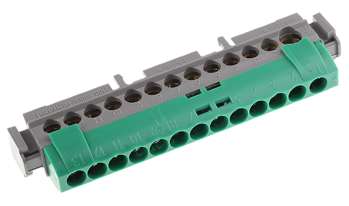 This is Distribution Block 1.5 → 16 mm² 6 → 25 mm² 13 Way 100A 400 V ac Green manufactured by Legrand. The manufacturer part number is 0 048 34. The product has a current rating of 100a. Whereas, the minimum operating temperature of the product is -5°c. It is IP rated with ip20. It has a decent green colour. Moreover, the product has a nominal 400 v ac voltage rating. The product also features robust pc housing material. Its accurate length is 113mm. It comprises 13 ways. It allows screw down termination method. The cross section area of the cable includes 1.5 → 16 mm², 6 → 25 mm². It has a maximum operating temperature of +40°c.