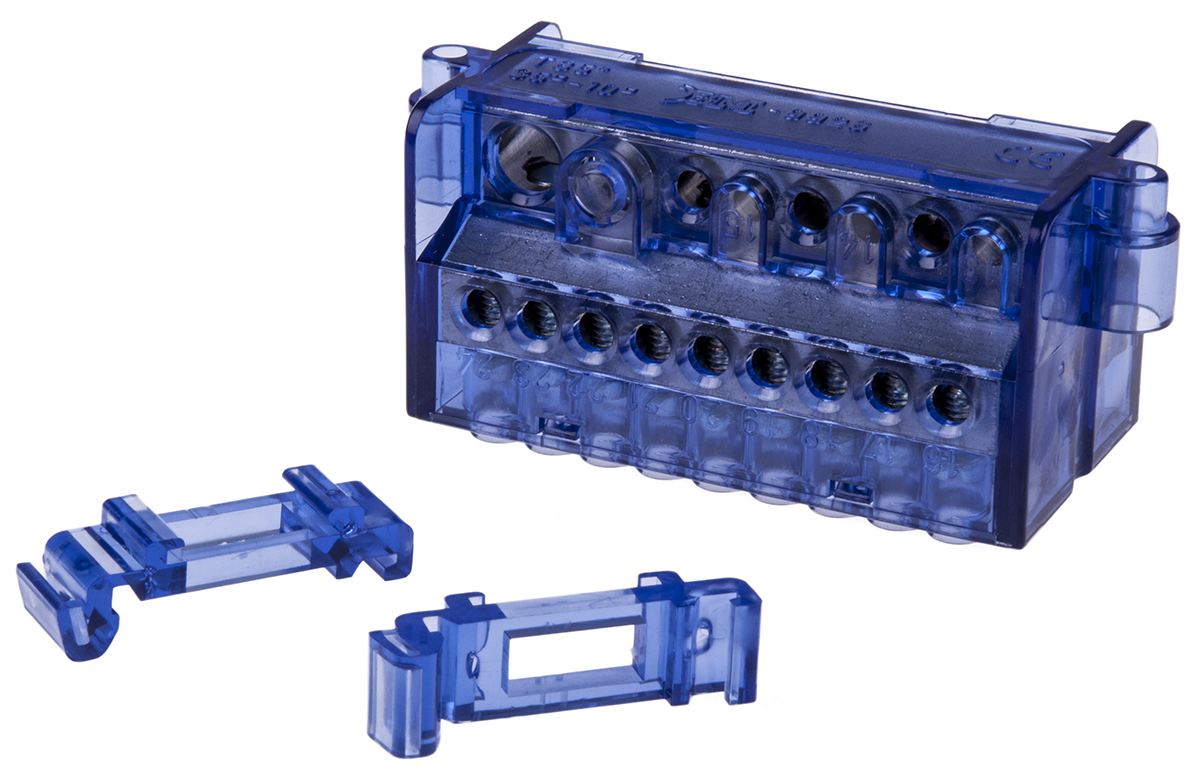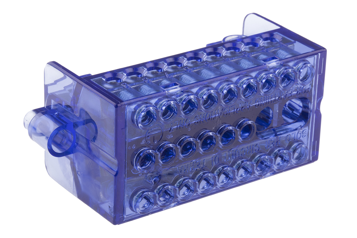 This is Distribution Block 26 Way Blue manufactured by RS Pro. The manufacturer part number is 868-0736. It comprises 26 ways. It has a decent blue colour. In addition, the height is 43mm. The product also features robust pc housing material. Furthermore, the product is 40mm wide. Its accurate length is 99mm. It allows screw termination method. Concerning wire's size, it is 35 mm². It has a maximum operating temperature of +85°c.