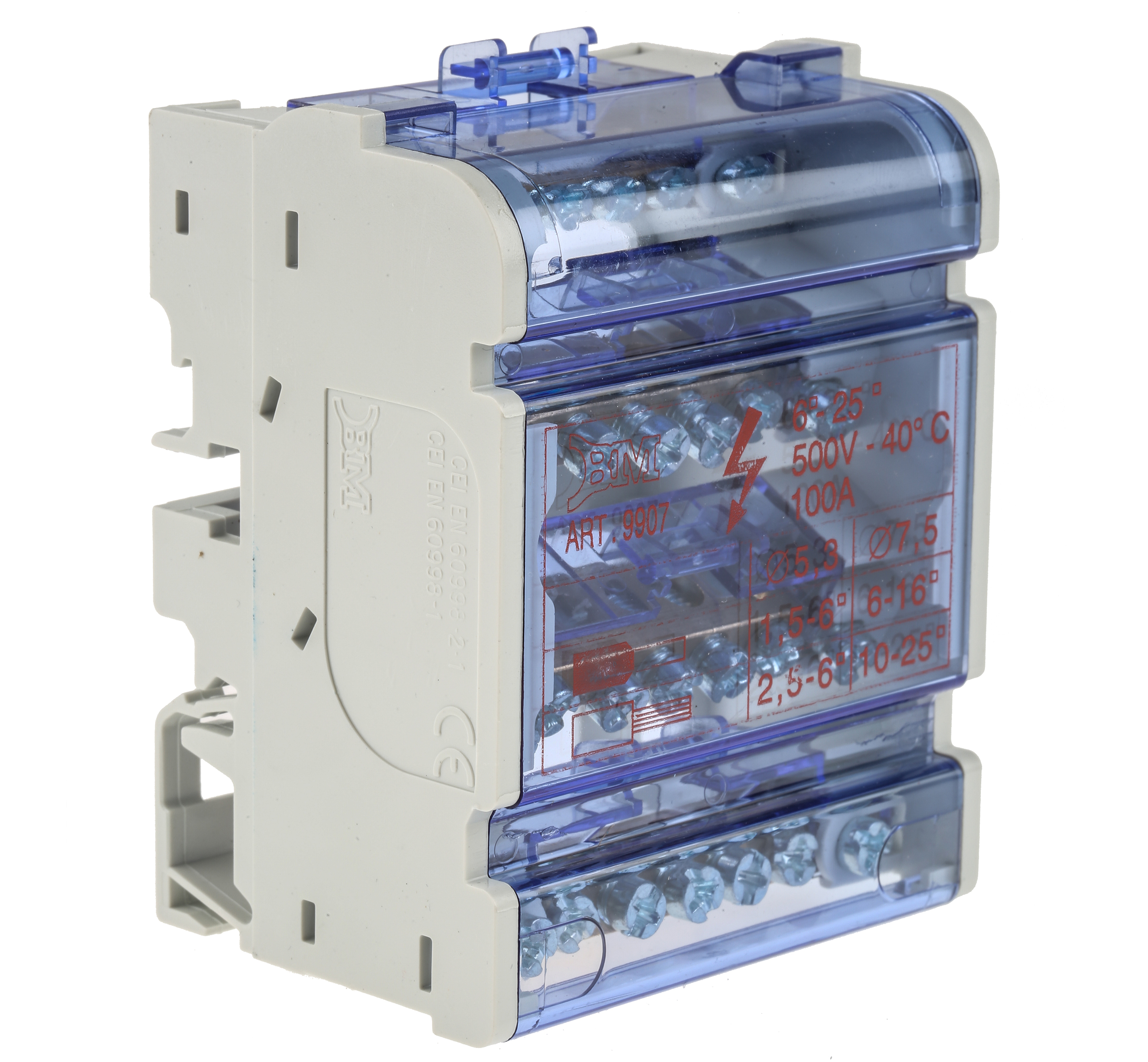 This is Distribution Block 100A 500 V manufactured by RS Pro. The manufacturer part number is 868-0720. The product has a current rating of 100a. Moreover, the product has a nominal 500 v voltage rating. The product also features robust pc housing material. Furthermore, the product is 50mm wide. Its accurate length is 87mm. It allows screw termination method. Concerning wire's size, it is 10 → 25 (without end sleeve) mm², 6 → 16 (with end sleeve) mm².
