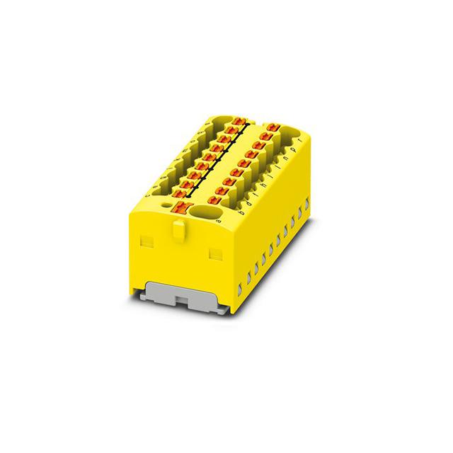 This is Distribution block manufactured by Phoenix Contact. The manufacturer part number is 1047435. The product has a current rating of 17.5a. It is IP rated with ip20. It has a decent yellow colour. Moreover, the product has a nominal 450 v voltage rating. The product also features robust polyamide housing material. It allows push in termination method. The cross section area of the cable includes 2.5mm². It comprises 19 ways. Concerning wire's size, it is 14 awg. It is assigned with possible HTSUS value of 8536.90.4000. Moreover, it has push in, spring terminal style. It is designed from highly reliable polyamide (pa), nylon insulating material. The product has -35°c ~ 105°c operating temperature range. It comes in middle configuration. The product carries possible position value of 19. A 0.2-6mm² of wire gauge. Additionally, the 0.736" (18.70mm) is the maximum height of the product. It has an integral yellow housing colour. It carries ul94 v-0 of material flammability rating. It is shipped in bulk package . It has a stripping length of 10mm ~ 12mm. An IEC current of 41 a. The product carries 1 levels. While 10-24 awg is its range or wire gauge. While 300 v is the typical voltage of the product. It has a long 6 weeks standard lead time. The built-in terminal is 43.9mm wide. The nominal voltage of the product is 450 v. The splendid features of the product include block of 9. The product is available in direct mount configuration. The product clipline ptfix, is a highly preferred choice for users. Its accurate length is 0.850" (21.60mm). The typical current includes 30 a. The product is designated with the ear99 code number.