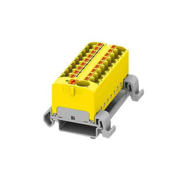 This is Distribution block manufactured by Phoenix Contact. The manufacturer part number is 3273774. The product has a current rating of 32a. It is IP rated with ip20. It has a decent yellow colour. Moreover, the product has a nominal 800 v voltage rating. The product also features robust polyamide housing material. It allows push in termination method. The cross section area of the cable includes 0.2 → 6mm². It comprises 19 ways. Concerning wire's size, it is 24 to 10 awg. It is assigned with possible HTSUS value of 8536.90.4000. Moreover, it has push in, spring terminal style. It is designed from highly reliable polyamide (pa), nylon insulating material. The product has -60°c ~ 105°c operating temperature range. It comes in middle configuration. The product carries possible position value of 19. Additionally, the 1.217" (30.90mm) is the maximum height of the product. It has an integral yellow housing colour. It carries ul94 v-0 of material flammability rating. It is shipped in bulk package . An IEC current of 32 a. The product carries 1 levels. It has a long 6 weeks standard lead time. The built-in terminal is 64.8mm wide. The nominal voltage of the product is 800 v. The splendid features of the product include block of 9. The product is available in din rail configuration. The product clipline ptfix, is a highly preferred choice for users. Its accurate length is 1.799" (45.70mm). The product is designated with the ear99 code number.