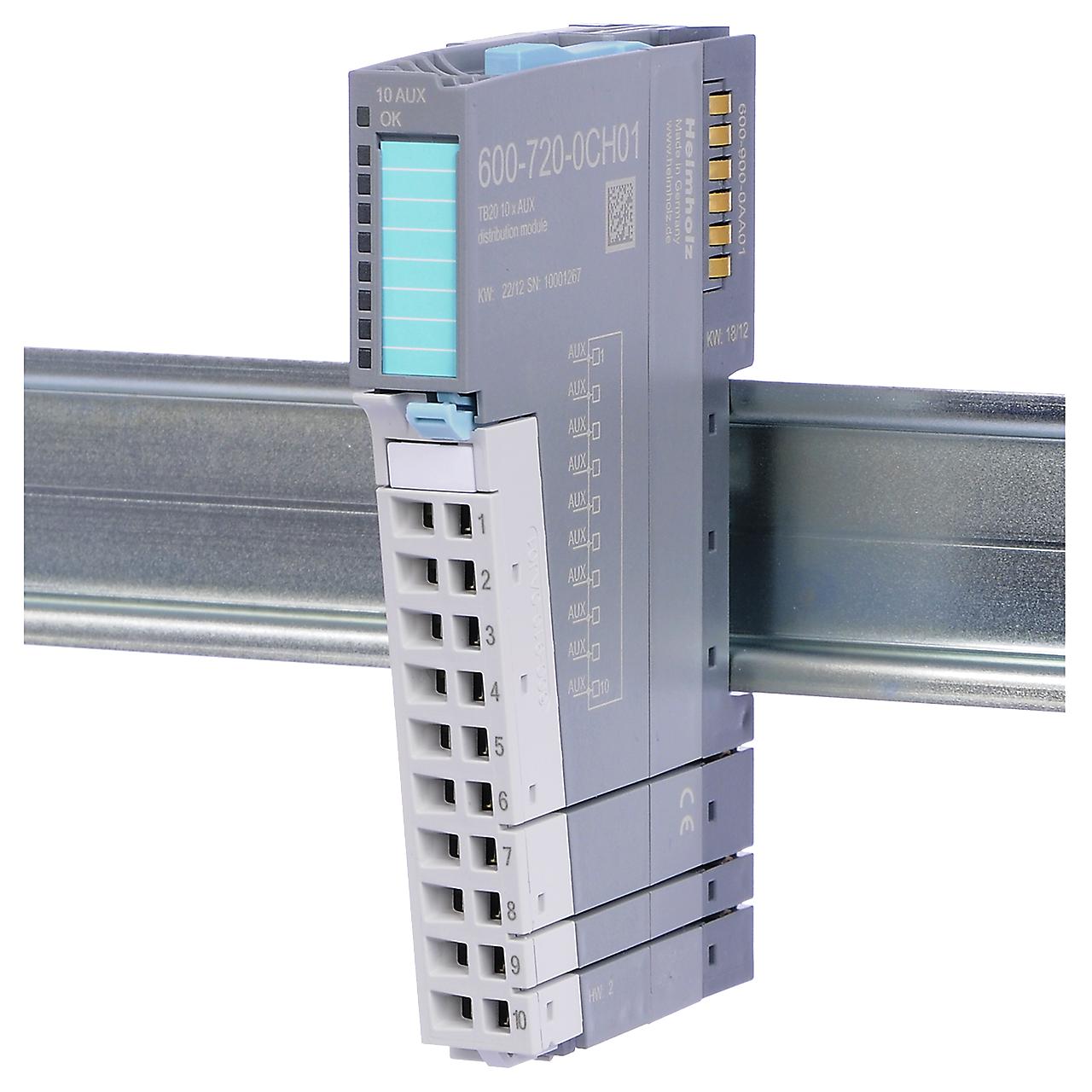 This is Distribution Block 10 Way 8A 24 V Grey manufactured by Helmholz GmbH & Co. KG. The manufacturer part number is 600-720-0CH01.
