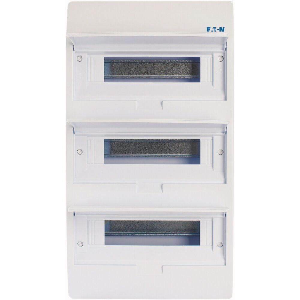 This is xComfort Distribution Board Enclosure 12 Way manufactured by Eaton. The manufacturer part number is 284642 BC-O-3/36-TW-ECO. It features xcomfort range. It has 12 outgoing ways .