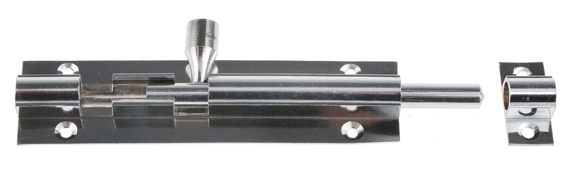 This is Brass Chrome Plated Door Bolt 100mm manufactured by RS Pro. The manufacturer part number is 893-8672. Its accurate length is 100mm. The product is made from highly stable and reliable brass.