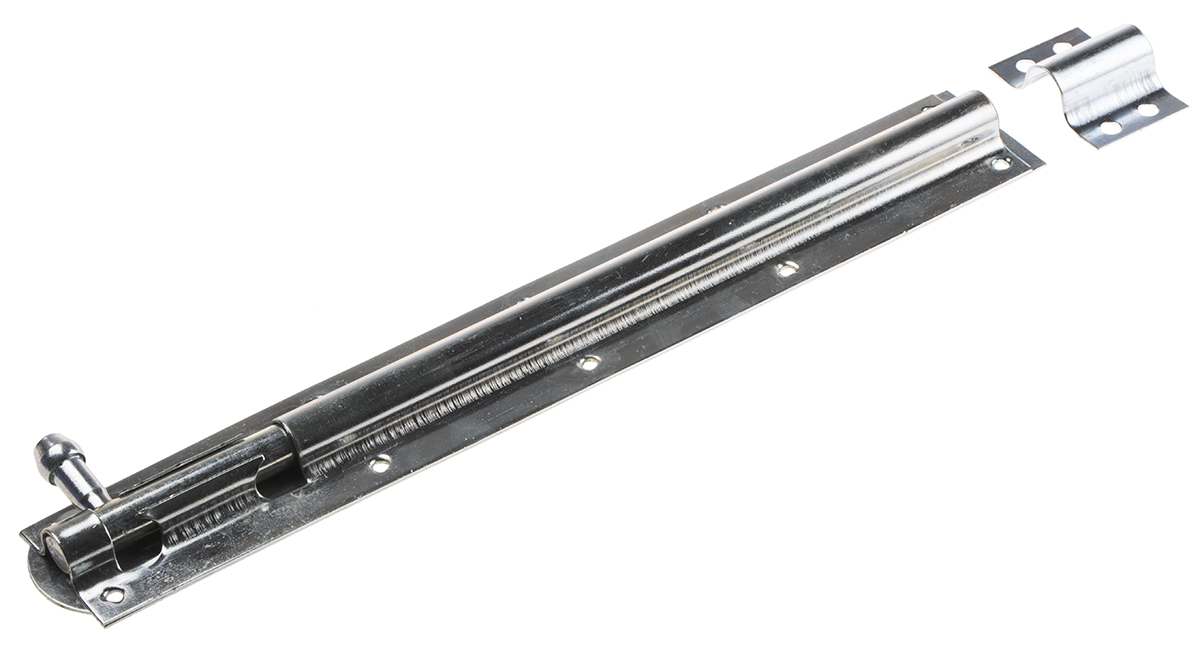 This is Steel BZP Door Bolt 300mm manufactured by RS Pro. The manufacturer part number is 893-8629. Its accurate length is 310mm. A quality product with a nice zinc finish. The product is made from highly stable and reliable steel. The given dimensions of the product include 310 x 45mm.