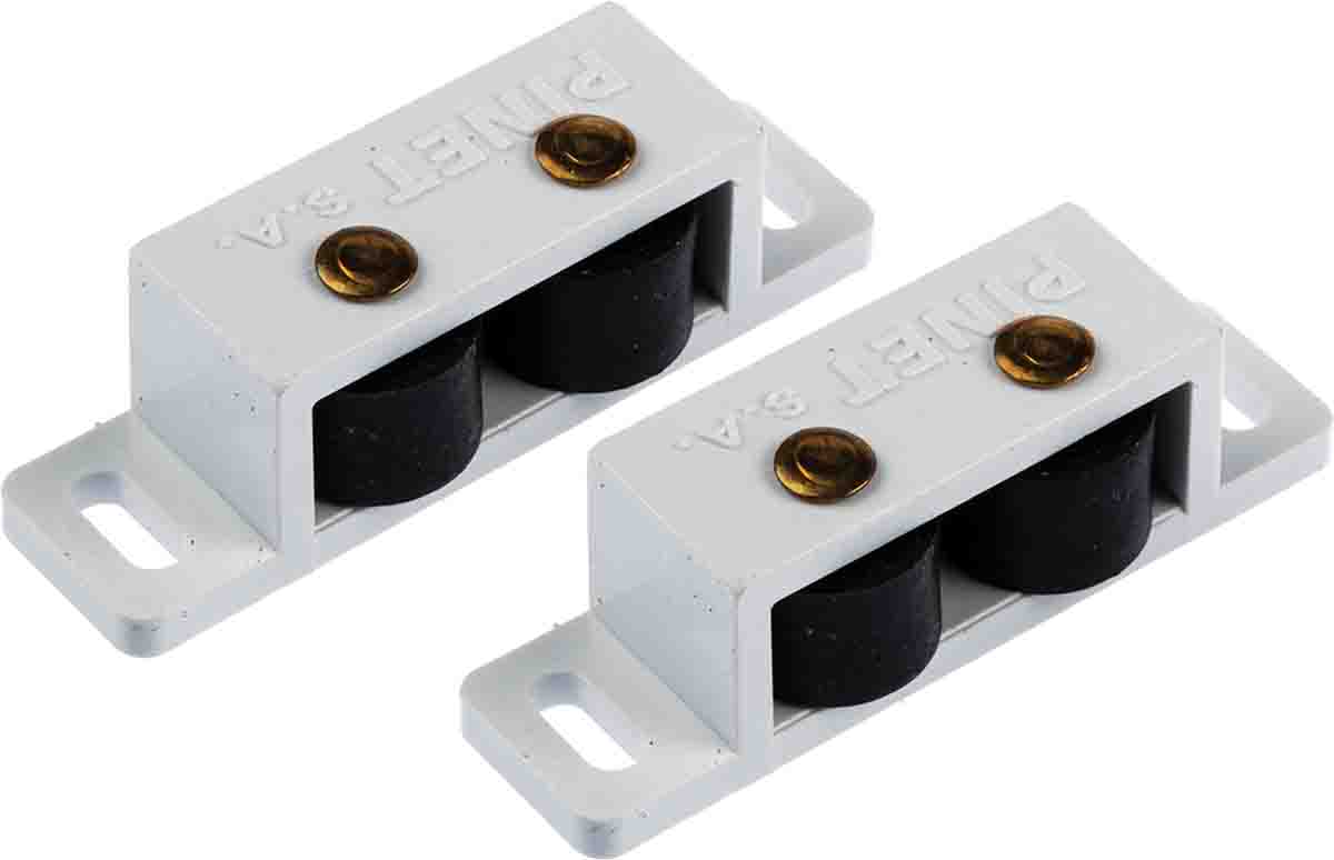 This is White plastic roller catch manufactured by Pinet. The manufacturer part number is 16-1-3594. It has approximately 3.2mm fixing hole size . It has a roller catch type catch . The product is made from highly stable and reliable plastic. Furthermore, the product is 14.0mm wide. Its accurate length is 53.0mm. it is built with 44.0mm catch fixing hole distance . The given dimensions of the product include 53 x 14mm.