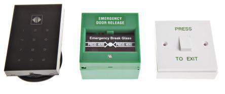 This is Access Control Kit with Keypad manufactured by RS Pro. The manufacturer part number is 774-8175. It has a/an access control kit type system . Features 12v dc supply voltage. It has break glass box, exit button, keypad, power supply components included .