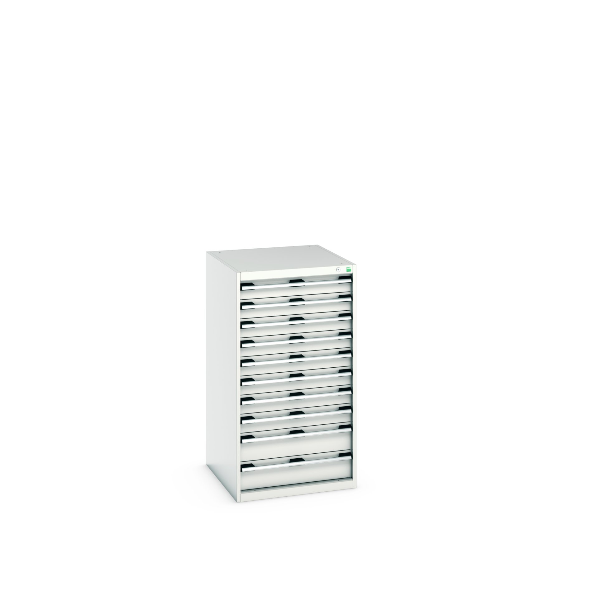 This is 10 Cabinet Steel 1200mm x 750mm x 650mm Light Grey manufactured by Bott. The manufacturer part number is 40027043.16V. It includes 10 high quality drawers . It has a decent light grey colour. The casing is constructed from highly stable steel material. In addition, the height is 1200mm. Furthermore, the product is 750mm wide. The product comes in 650mm depth.