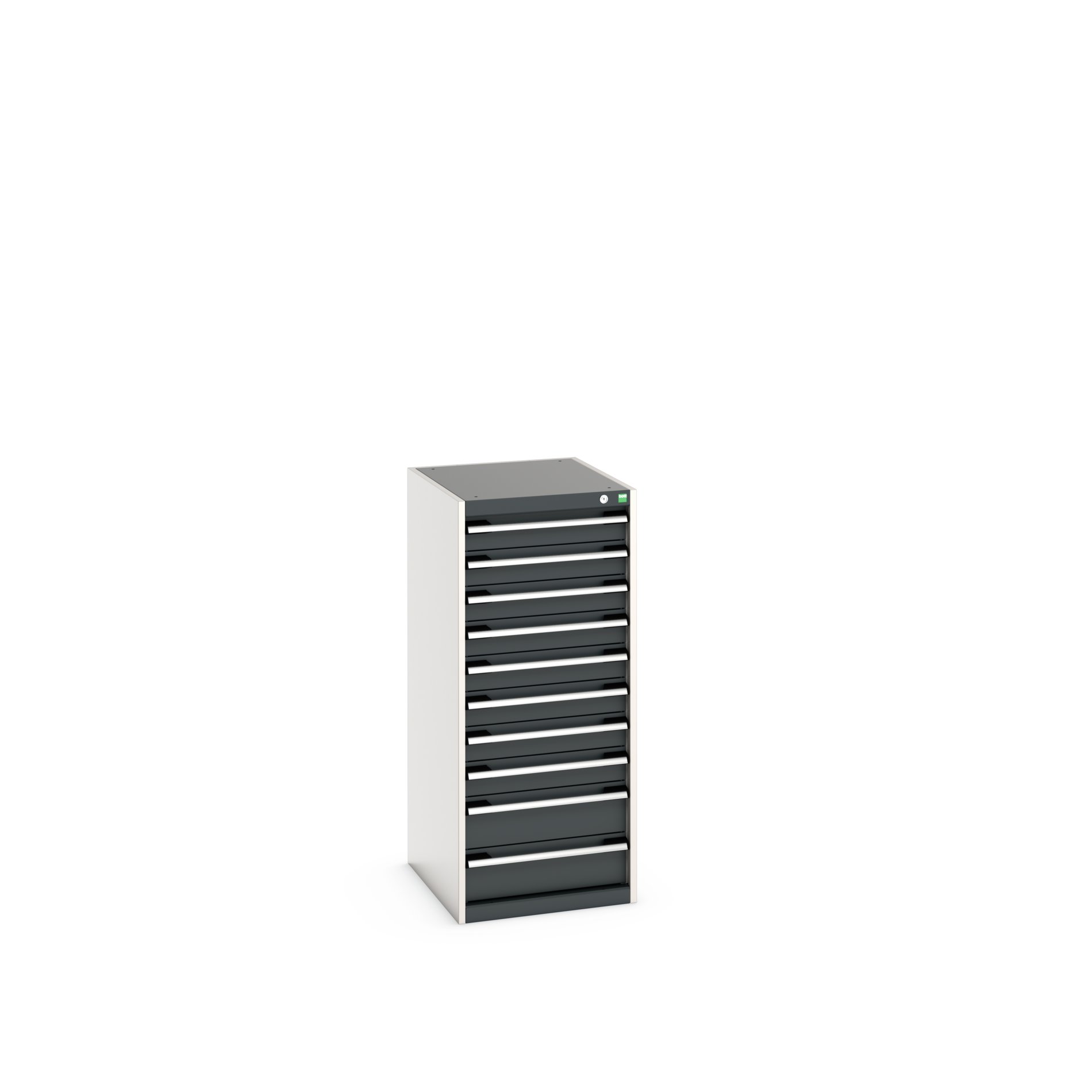 This is 10 Cabinet Steel 1200mm x 650mm x 525mm Grey manufactured by Bott. The manufacturer part number is 40018073.19V. It includes 10 high quality drawers . It has a decent grey colour. The casing is constructed from highly stable steel material. In addition, the height is 1200mm. Furthermore, the product is 650mm wide. The product comes in 525mm depth.