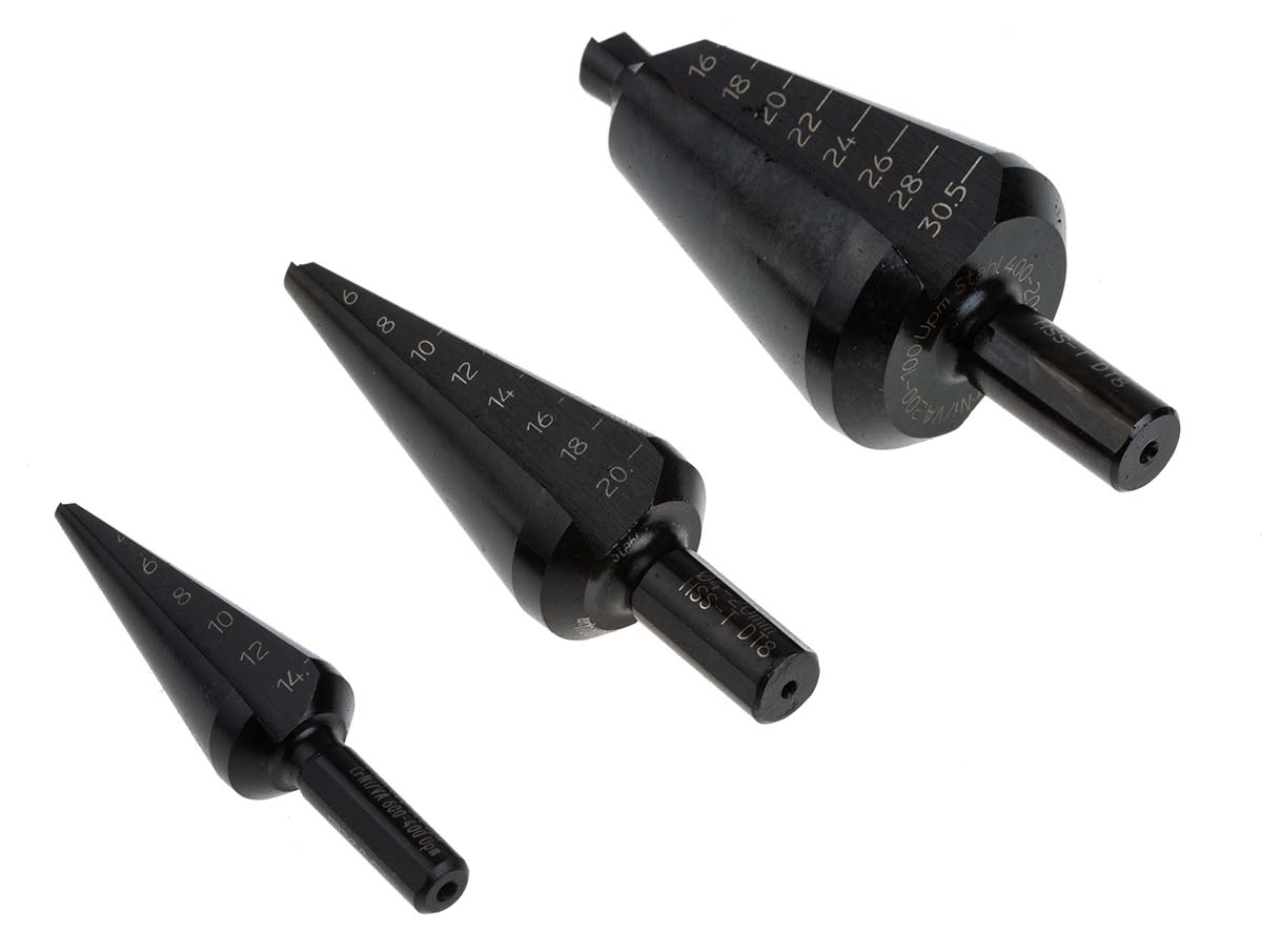 This is HSS 3mm to 30.5mm 3 piece Conical Drill Set manufactured by EXACT. The manufacturer part number is 05209. Moreover, it has a minimum 3mm size . The product is made from highly stable and reliable hss. It has a maximum 30.5mm size . It is for metal drilling applications . It has a/an step drill bit type drill bit . Moreover, it has step drill bits set contents . The product consists of 3 pieces.