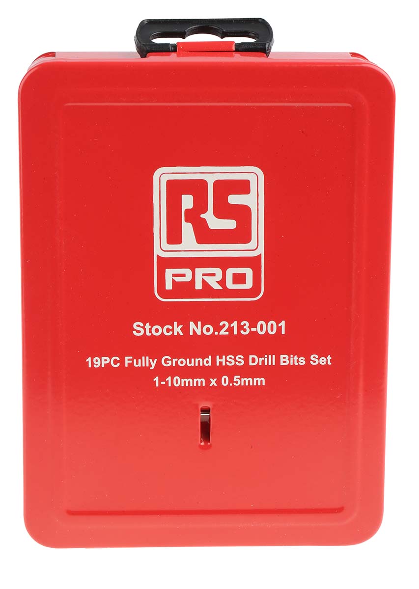 This is HSS-G 1mm to 10mm 19 piece Twist Drill Set manufactured by RS Pro. The manufacturer part number is 213-001. Moreover, it has a minimum 1mm size . The product is made from highly stable and reliable hss. It has a maximum 10mm size . It is for metal drilling applications . It has a/an twist drill bit type drill bit . Moreover, it has hss drill bits set contents . The product consists of 19 pieces.