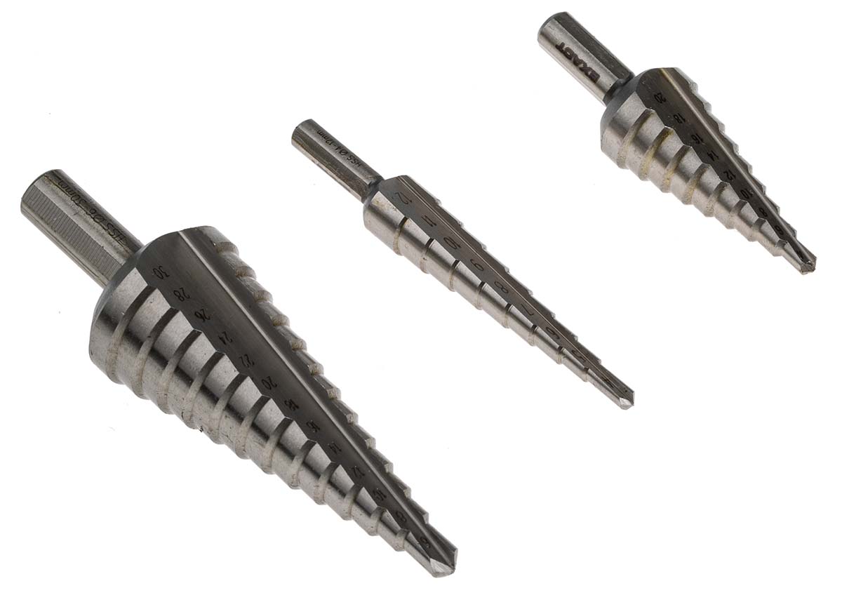 This is HSS 4mm to 30mm 3 piece Step Drill Set manufactured by EXACT. The manufacturer part number is 05332. Moreover, it has a minimum 4mm size . The product is made from highly stable and reliable hss. It has a maximum 30mm size . It is for metal drilling applications . It has a/an step drill bit type drill bit . Moreover, it has step drill bits set contents . The product consists of 3 pieces.
