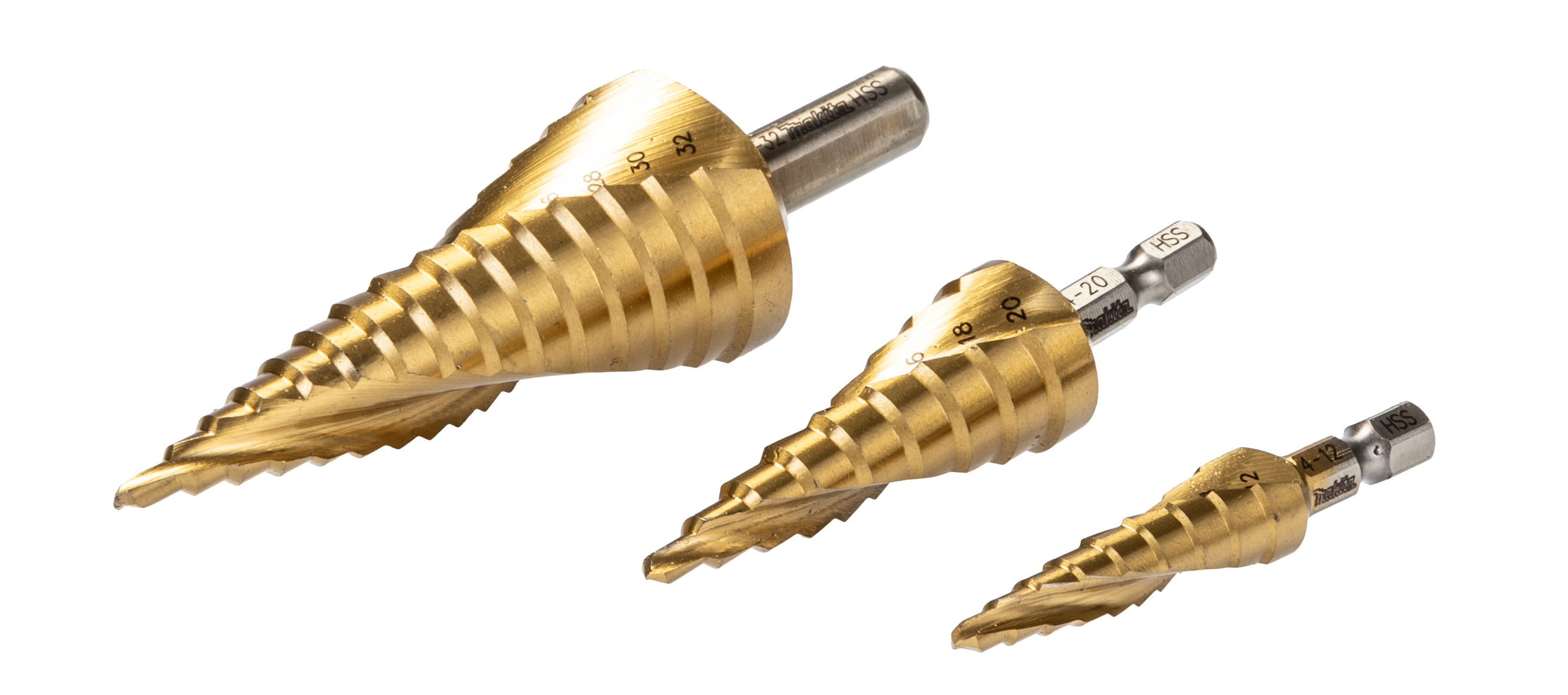This is STEP DRILL 3PC SPIRAL TIN COAT manufactured by Makita. The manufacturer part number is D-41872. Moreover, it has a minimum 4mm size . The product d, is a highly preferred choice for users. The product is made from highly stable and reliable titanium-nitride (coated). It has a maximum 32mm size . This is a type of step drill bit, a set with user-desired tools. It is for metal drilling applications . It has a/an step drill bit type drill bit . Moreover, it has step drill bit set contents . The product consists of 3 pieces.