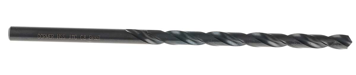 This is A110 HSS 6.8mm Long Drill Bit 156 mm Plain Shank manufactured by Dormer. The manufacturer part number is A110 6.8MM. Its diameter is 6.8mm. The product a110, is a highly preferred choice for users. The product is made from highly stable and reliable hss. In addition, it has a point angle of 118° . It has an overall length of 156 mm. It has a/an twist drill bit type drill bit . The product consists of 1 pieces.