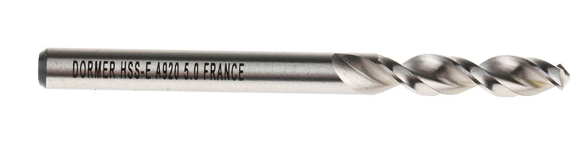 This is A920 HSCo 5mm Short Drill Bit 62 mm Plain Shank manufactured by Dormer. The manufacturer part number is A9205.0. Its diameter is 5mm. The product a920, is a highly preferred choice for users. The product is made from highly stable and reliable hsco. In addition, it has a point angle of 130° . It is for steel drilling applications . It has an overall length of 62 mm. It has a/an twist drill bit type drill bit . The product consists of 6 pieces.