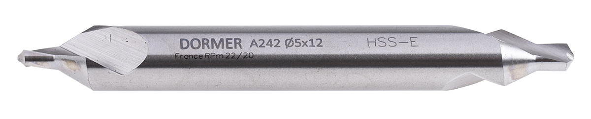 This is A242 60° HSS-E Centre Drill Bit 100 mm manufactured by Dormer. The manufacturer part number is A2425.0X12.0. Its diameter is 5 mm, 12 mm. The product a2425, is a highly preferred choice for users. The product is made from highly stable and reliable hss-e. In addition, it has a point angle of 60° . It has an overall length of 100 mm. It has a/an centre drill bit type drill bit .