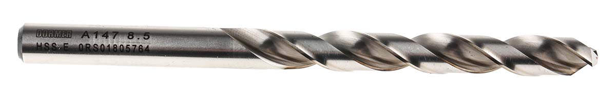This is A147 HSS-E 8.5mm Jobber Drill Bit 117 mm Plain Shank manufactured by Dormer. The manufacturer part number is A1478.5. It has a/an twist drill bit type drill bit . The product a147, is a highly preferred choice for users. The product is made from highly stable and reliable hss-e. It has an overall length of 117 mm. Its diameter is 8.5mm.