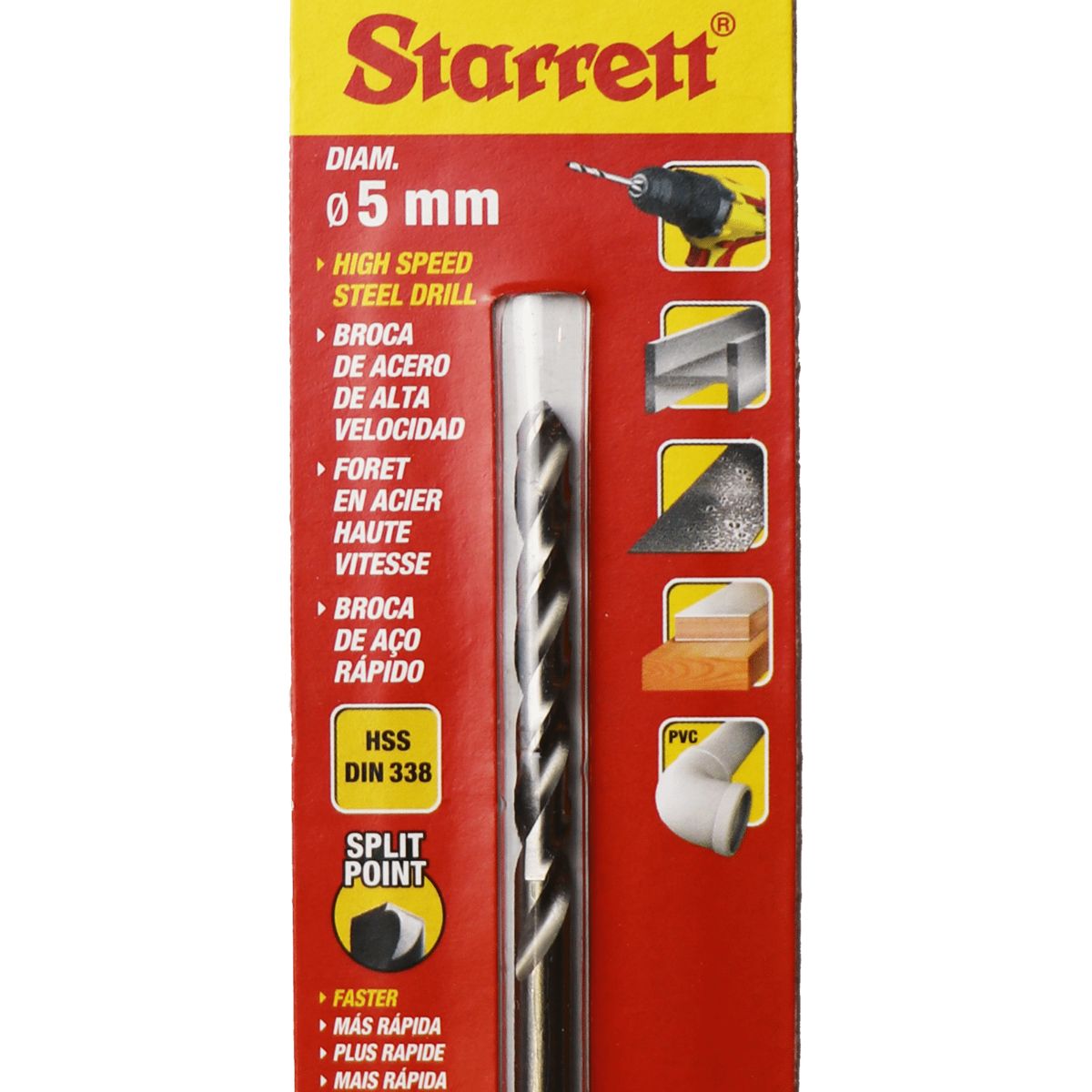 This is KBAR Series HSS Twist Drill Bit 5mm Diameter 86 mm Overall manufactured by Starrett. The manufacturer part number is KBAR050. Its diameter is 5mm. The product kbar, is a highly preferred choice for users. The product is made from highly stable and reliable hss. In addition, it has a point angle of 130° . It has an overall length of 86 mm. It has a/an twist drill bit type drill bit .