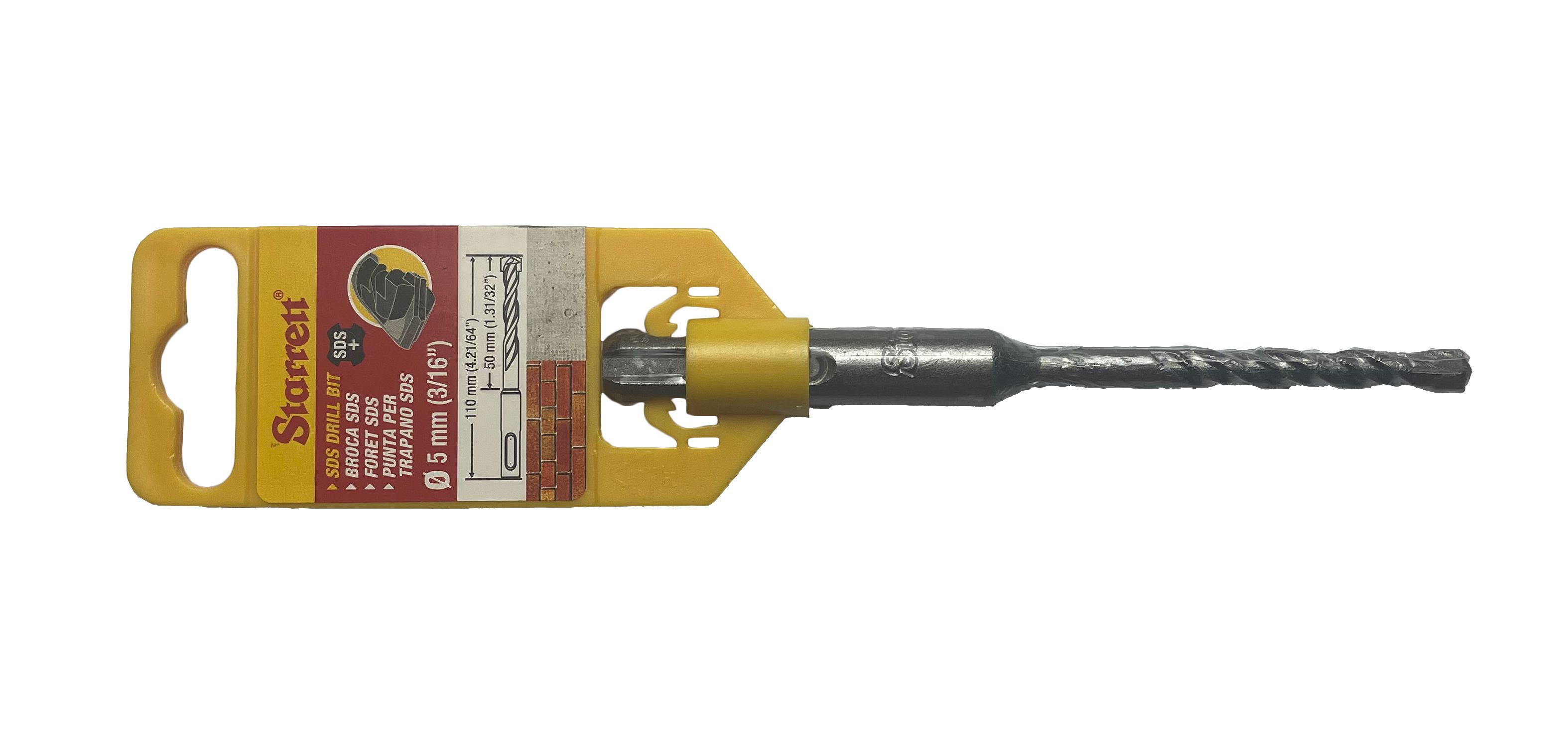 This is SDS Plus Series Carbide Tipped SDS Plus Drill Bit 5mm Diameter 110 mm Overall manufactured by Starrett. The manufacturer part number is KBPS05A. Its diameter is 5mm. The product sds plus, is a highly preferred choice for users. The product is made from highly stable and reliable carbide tipped. In addition, it has a point angle of 130° . It has an overall length of 110 mm. It has a/an sds plus drill bit type drill bit .