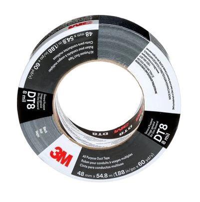 This is DT8 Duct Tape 54.8m x 48mm Black manufactured by 3M. The manufacturer part number is DT8 48mm x 54,8m Black. This highly innovate tape is a duct tape with effective applications. It has a decent black colour. It has a model number dt8. It is 0.2mm thick. Furthermore, the product is 48mm wide. Its accurate length is 54.8m. It has rubber as adhesive material . Whereas, the minimum operating temperature of the product is +4.44°c. Its elongation at break is 19% . The product has an added tensile strength of 42n/cm. It has a maximum operating temperature of +65.56°c. Whereas, its backing is made using polyethylene over cloth scrim/rubber material .