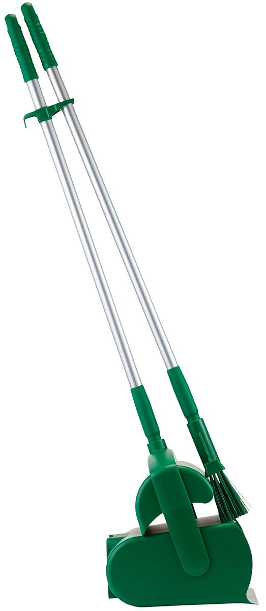 This is Dustpan set closable with broom 370 mm manufactured by Vikan. The manufacturer part number is 56612. It has a decent green colour. Its bristle is made using high-quality pet material .