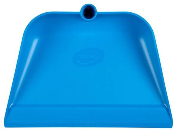 This is Blue Dust Pan for Cleaning manufactured by Vikan. The manufacturer part number is 56623. Applications Information involves cleaning. It has a decent blue colour. Brush included no .
