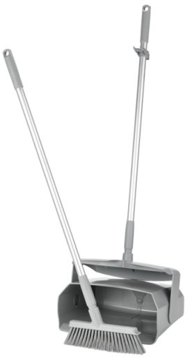 This is Grey Dustpan & Brush for Cleaning with brush included manufactured by Vikan. The manufacturer part number is 566588. Applications Information involves cleaning. It has a decent grey colour. Its bristle is made using high-quality polyester, polypropylene, stainless steel material . Brush included yes .