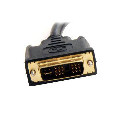 This is DVI-I (23 pin) Male Plug to VGA (15 pin High Density D-Sub) Female Socket DisplayPort Cable 300mm manufactured by Startech. The manufacturer part number is DVISPL1VV. The product complies with all safety standards, such as dvi ddwg standard. Its connector A is of dvi-i type . The strand size includes 28 awg. It is a typical dvi-a to vga cable. The sheath has an adorable black colour. It includes a/an vga type connector B . Its accurate length is 300mm. While connector B has a female gender. Whereas the outer sheath is manufactured from pvc material. Connector A is a male allowing user-desired applications.