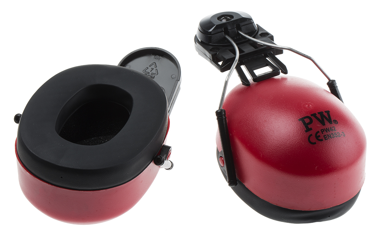 RS Pro Clip On Helmet Mounted Ear Defenders RS Pro Clip-on ear protectors have large acoustic foam filled cups which offer excellent attenuation to SNR 23 dB. The ear protectors clip onto and are compatible with safety helmet series PW50 and PW51. The ear defenders are made from a high impact polystyrene cup complete with PVC cushions. A bonus to these versatile dear defenders is that they can be adjusted to be in a stand off position. FEATURES and BENEFITS: Large acoustic cups Excellent attenuation SNR 23 dB High impact polystyrene HIPS cup with PVC cushions Clip-on easy attach Lightweight Comfortable Slim Adjustable to stand off position Compatible with Helmets PW50 and PW51 Standards EN352-3 Approvals CE Marked