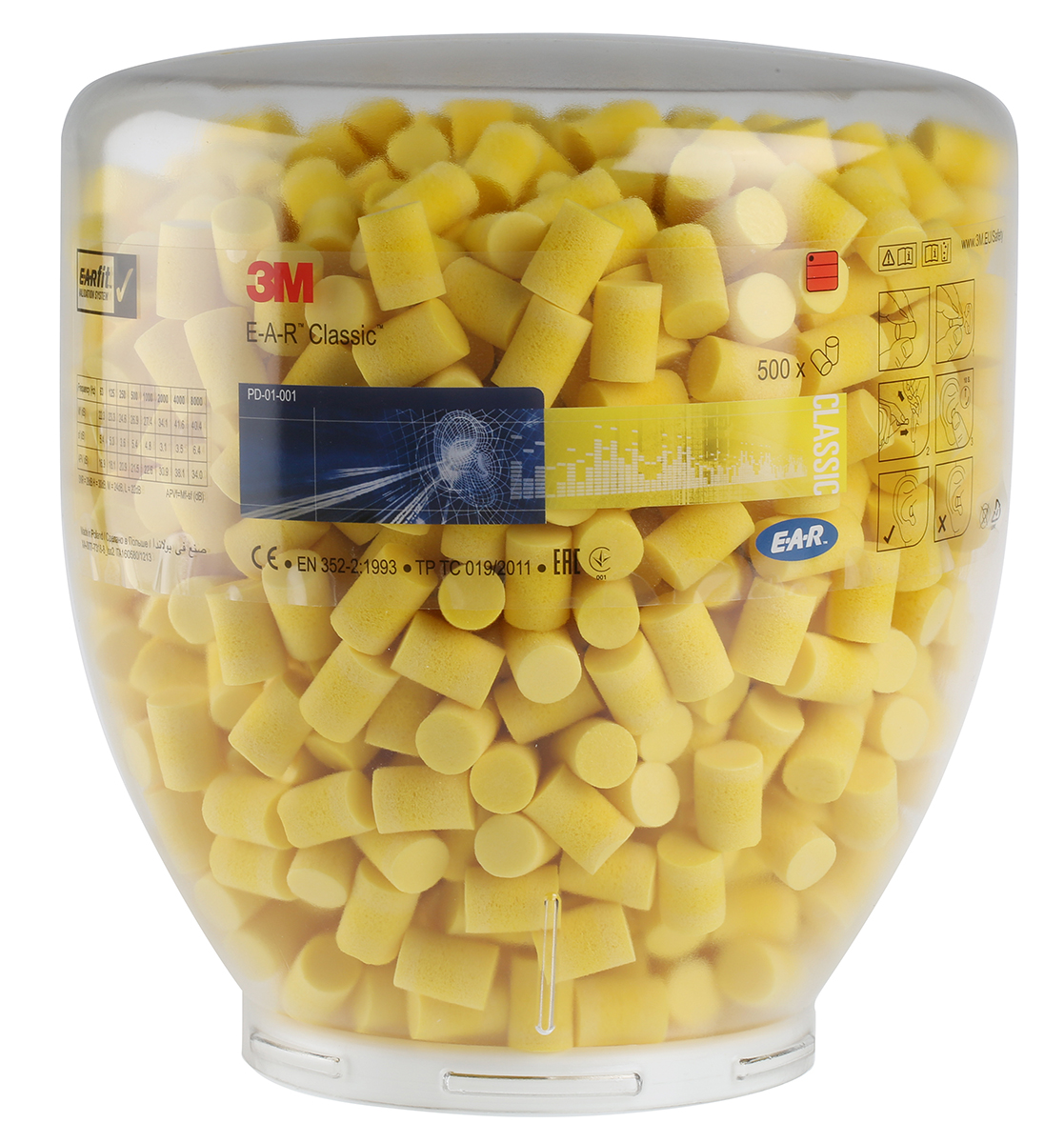 This is Yellow PVC Ear Plugs 28dB 500 Pairs manufactured by 3M E.A.R. The manufacturer part number is PD-01-001. The product complies with all safety standards, such as ce, en 352-2. The product has a/an uncorded style attachment . The product classic, is a highly preferred choice for users. It has a decent yellow colour. The product is made from highly stable and reliable pvc. It has 500 number of pairs per package . The product is compliant with en 352-2:2020 EN standards . In addition, the product is disposable . It is metal detectable no . It has 31db single number rating SNR .