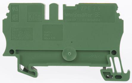 This is 2 Way ZPE 2.5 Earth Terminal Block Clamp 26 → 12 AWG 63mm Length Green manufactured by Weidmuller. The manufacturer part number is ZPE 2.5 -1608640000. It comprises 2 ways. It has a decent green colour. In addition, the height is 39.5mm. The product also features robust wemid housing material. Furthermore, the product is 5.1mm wide. Its accurate length is 63mm. Whereas, the minimum operating temperature of the product is -50°c. It allows clamp termination method. Concerning wire's size, it is 26 → 12 awg. It has a maximum operating temperature of +100°c. It has a zpe 2.5 type earth block .