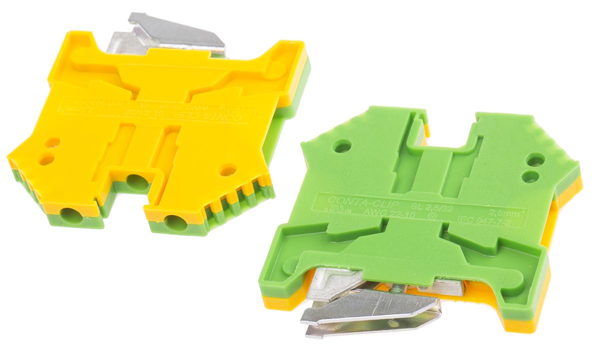 This is 2 Way G Rail Earth Terminal Block Screw Down 0.2 → 4 mm² 48mm length Green/Yellow manufactured by RS Pro. The manufacturer part number is 501-859. It comprises 2 ways. It has a decent green/yellow colour. In addition, the height is 51.7mm. The product also features robust nylon housing material. Furthermore, the product is 6mm wide. Its accurate length is 48mm. It allows screw down termination method. The cross section area of the cable includes 2.5mm². Concerning wire's size, it is 0.2 → 4 awg. It has a g rail type earth block .