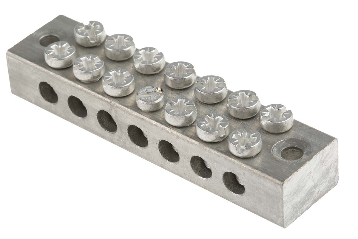 This is 7 Way Double Screw Earth Terminal Block Screw Down 0 → 16 mm² 76.99mm length Grey manufactured by RS Pro. The manufacturer part number is 283-0774. It comprises 7 ways. It has a decent grey colour. In addition, the height is 12.2mm. The product also features robust brass housing material. Furthermore, the product is 18.5mm wide. Its accurate length is 77.2mm. It allows screw down termination method. The cross section area of the cable includes 0 to 16mm². Concerning wire's size, it is 0 → 16 awg. It has a double screw type earth block .