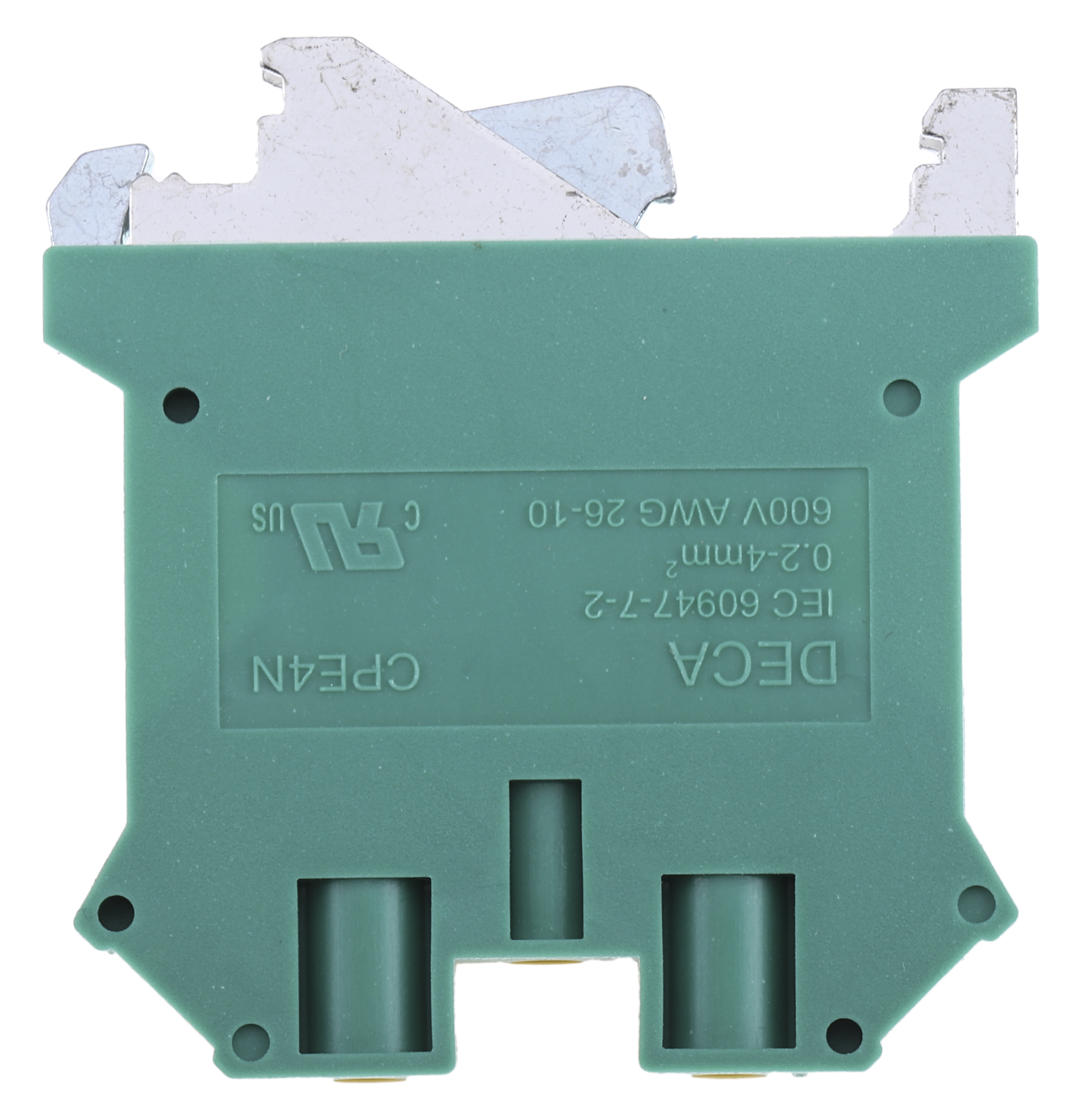 This is 2 Way DIN Rail Earth Block Screw 26 → 10 AWG 42.8mm length Green/Yellow manufactured by RS Pro. The manufacturer part number is 878-7575. The product is certified with no hazardous area certification. earth block is a versatile product designed to provide user-defined applications. It comprises 2 ways. The product cp, is a highly preferred choice for users. It has a decent yellow, green colour. In addition, the height is 6.2mm. The product also features robust polyamide housing material. Furthermore, the product is 45.3 mm wide. Its accurate length is 42.8mm. It carries a 60 v of voltage. The product is designed with a screw termination. The cross section area of the cable includes 0.2 to 4 mm². Concerning wire's size, it is 26/10 awg. It has a din rail type earth block .