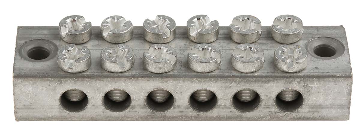 This is 6 Way Double Screw Earth Terminal Block Screw Down 0 → 16 mm² 67.45mm Length Grey manufactured by RS Pro. The manufacturer part number is 283-0768. It comprises 6 ways. It has a decent grey colour. In addition, the height is 12.2mm. The product also features robust brass housing material. Furthermore, the product is 18.5mm wide. Its accurate length is 69mm. It allows screw down termination method. The cross section area of the cable includes 0 to 16mm². Concerning wire's size, it is 0 → 16 awg. It has a double screw type earth block .
