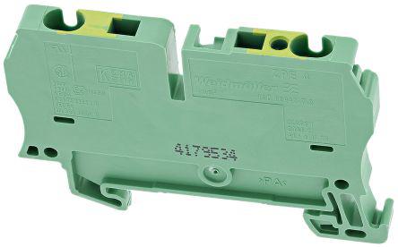 This is 2 Way ZPE4 DIN Rail Earth Terminal Block Clamp 26 → 10 AWG 64mm Length Green manufactured by Weidmuller. The manufacturer part number is ZPE 4 -1632080000. It comprises 2 ways. Moreover, the product has a nominal 800 v voltage rating. It has a decent green colour. In addition, the height is 43.5mm. The product also features robust wemid housing material. Furthermore, the product is 6.1mm wide. Its accurate length is 64mm. Whereas, the minimum operating temperature of the product is -50°c. It allows clamp termination method. Concerning wire's size, it is 26 → 10 awg. It has a maximum operating temperature of +100°c. It has a zpe4 din rail type earth block .