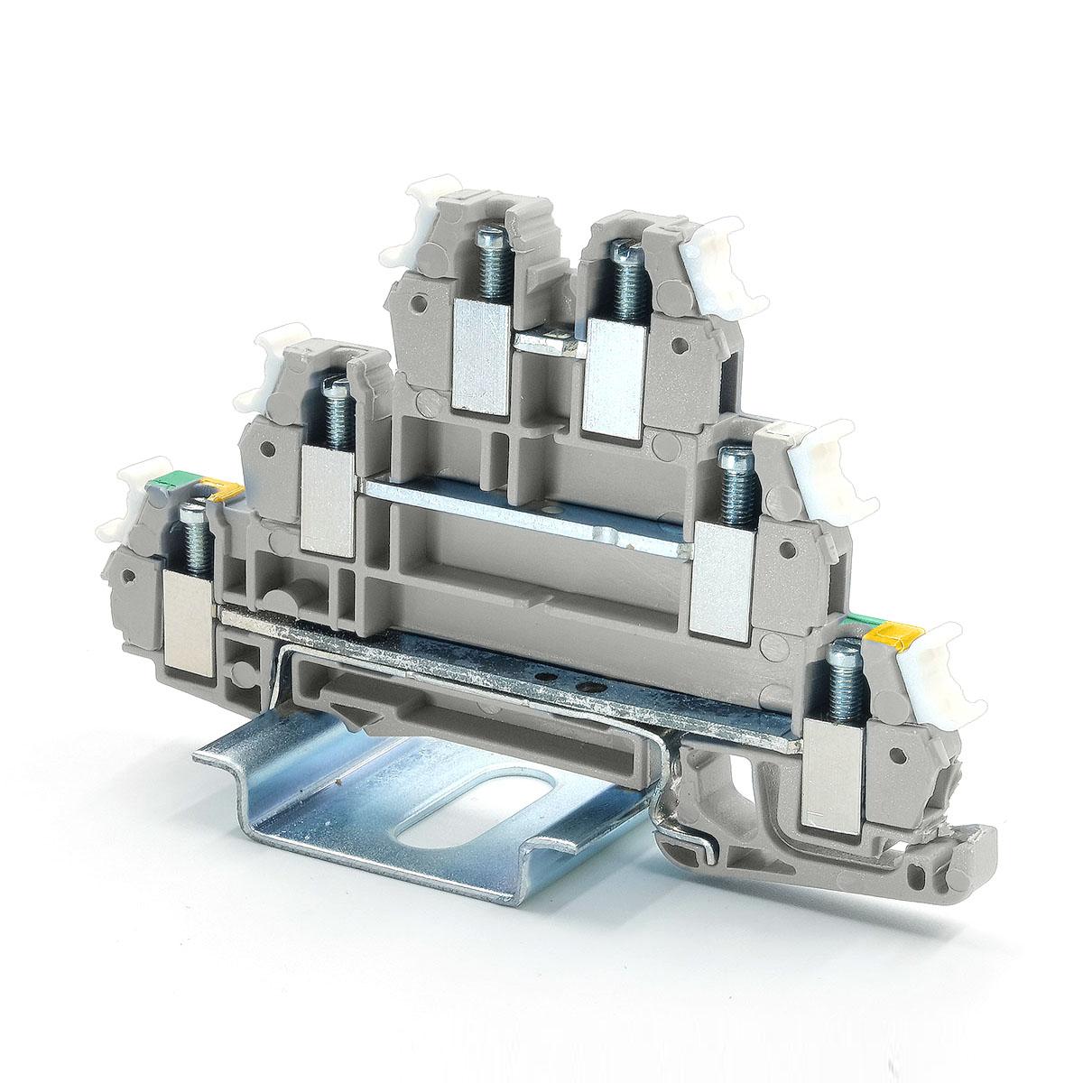 This is 3-Way DIN Rail Earth Terminal Block 2.5mm² 26 → 14 AWG Wire Cage Clamp PA 66 Housing manufactured by RS PRO. The manufacturer part number is 262-4219. The product has a current rating of 24a. Moreover, the product has a nominal 250 v voltage rating. It has a decent grey colour. The product also features robust pa 66 housing material. Furthermore, the product is 5mm wide. It comprises 3 ways. It allows cage clamp termination method. The cross section area of the cable includes 2.5mm². Concerning wire's size, it is 26 → 14 awg. It has a din rail type earth block .