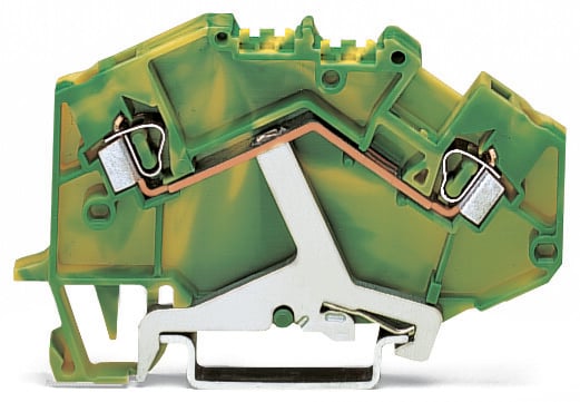 This is 2-Way DIN Rail Earth Terminal Block 2.5mm² 14 AWG Wire Cage Clamp Polyamide Housing manufactured by WAGO. The manufacturer part number is 780-607. It comprises 2 ways. It has a decent green, yellow colour. The product also features robust polyamide housing material. It allows cage clamp termination method. The cross section area of the cable includes 2.5mm². Concerning wire's size, it is 14 awg. It has a din rail type earth block .