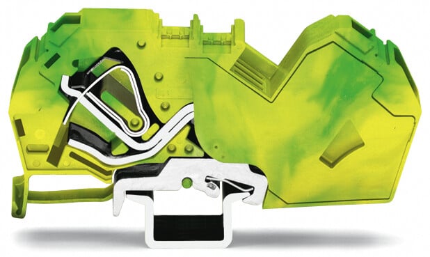 This is 2-Way DIN Rail Earth Terminal Block 35mm² 2 AWG Wire Cage Clamp Polyamide Housing manufactured by WAGO. The manufacturer part number is 785-607. It comprises 2 ways. It has a decent green, yellow colour. The product also features robust polyamide housing material. It allows cage clamp termination method. The cross section area of the cable includes 35mm². Concerning wire's size, it is 2 awg. It has a din rail type earth block .