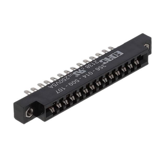 This is manufactured by EDAC Inc.. The manufacturer part number is 356-014-500-107. Furthermore, flush mount, top opening, threaded insert, m3 is the Flange Feature of the product. It is assigned with possible HTSUS value of 8536.69.4040. The product is rohs3 compliant. It is designed from highly reliable polyester thermoplastic insulating material. A typical product' card thickness is 0.054" ~ 0.070" (1.37mm ~ 1.78mm). It has 14 positions. It has 10.0µin (0.25µm) of contact finishing thickness. The product carries possible position value of 28. The product features a non specified - dual edge card type. In addition, it is reach unaffected. It comes in 2 of rows. The edac inc.'s product offers user-desired applications. In addition, female is the available "Gender" of the product. Furthermore, the product is galvanized with excellent gold contact finishing. Its typical moisture sensitivity level is 1 (unlimited). The product features solder eyelet(s) termination style. It has a long 18 weeks standard lead time. Additionally, the bespoke product is available as 1 terminal(s). The product is available in panel mount configuration. It has a classic black colour. The product 356, is a highly preferred choice for users. The product has -40°c ~ 105°c operating temperature range. In addition, box is the available packaging type of the product. It features dual read values. Moreover, the product is 0.156" (3.96mm). It has typical contact type of cantilever. The product is made from sturdy copper alloy materials. Moreover, it corresponds to 356-014, a base product number of the product. The product is designated with the ear99 code number.