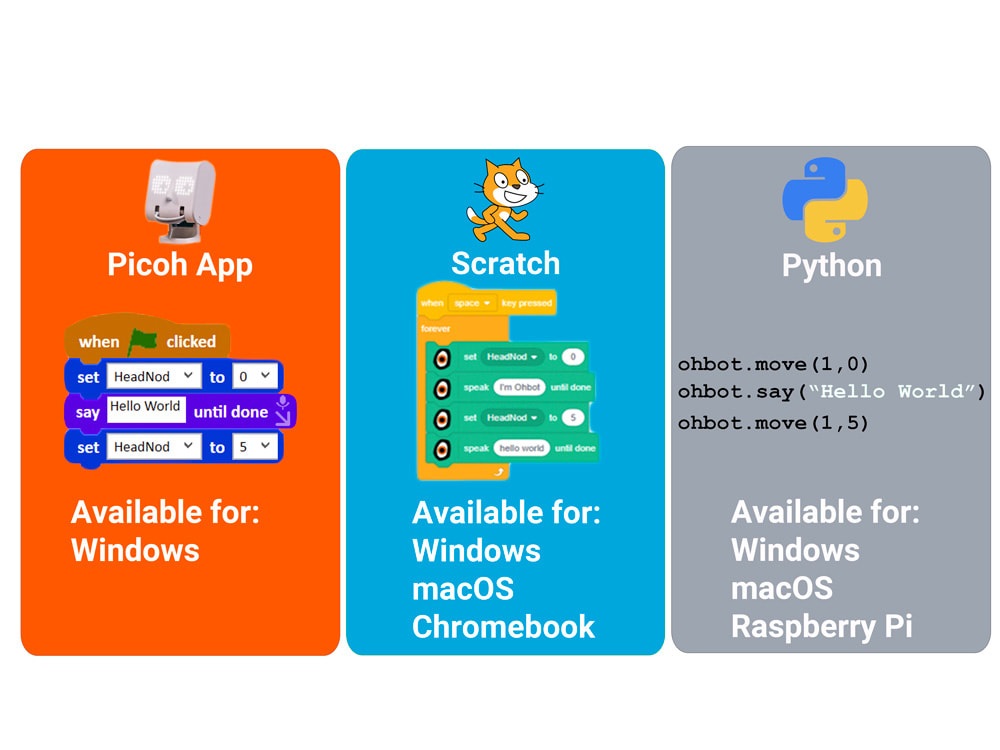 This is 3 axis Robot for Collaborative Education General Assembly Industrial Machine Loading Pick and Place use Picoh manufactured by Ohbot. The manufacturer part number is 500. This kit is known as picoh ai educational robot - white, consists of highly versatile and user-desired tools.