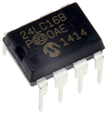 This is Serial EEPROM Memory 16kbit 900ns 8-Pin PDIP manufactured by Microchip. The manufacturer part number is 24LC16B/P. Its data retention capability is up to 200yr . The given dimensions of the product include 9.4 x 6.35 x 3.3mm. The product is available in through hole configuration. The product has 8 block x 256 x 8 bit organisation configuration. Whereas, the minimum operating temperature of the product is 0 °c. While its minimum operating supply voltage is 2.5 v. In addition, the height is 3.3mm. Furthermore, the product is 6.35mm wide. Its accurate length is 9.4mm. It holds a typical memory size of 16kbit. The package is a sort of pdip. It is a type of i2c interface. Its standard programming voltage is 2.5 → 5.5v . The product exhibits a maximum 900ns random access time . It has 5.5 v maximum operating supply voltage. It has a maximum operating temperature of +70 °c. It contains 8 pins.