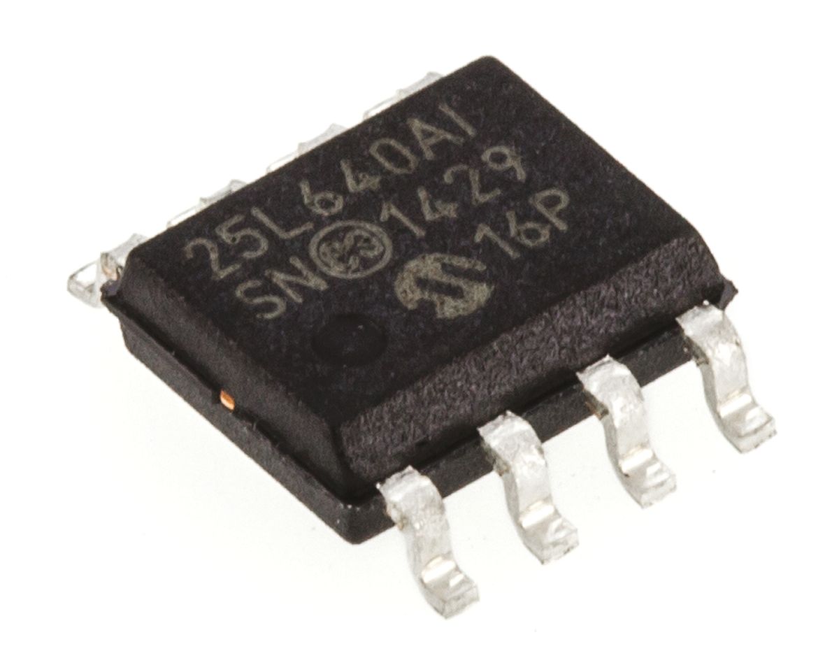 This is Serial EEPROM Memory 64kbit 100ns 2.5 → 5.5 V 8-Pin SOIC manufactured by Microchip. The manufacturer part number is 25LC640A-I/SN. Its data retention capability is up to 200year . It has a minimum 2.5v supply voltage . The product requires a maximum 5.5v supply voltage . It has a maximum operating temperature of 85°c. The product has 8k x 8 bit organisation configuration. It exhibits 8 per word . The product complies with automotive standard - aec-q100. Furthermore, the product is 6 mm wide. Its accurate length is 4.9mm. It holds a typical memory size of 64kb. The package is a sort of soic. It is a type of serial-spi interface. Whereas, the minimum operating temperature of the product is -40°c. In addition, it has a maximum clock frequency about 10mhz . The product exhibits a maximum 100ns random access time . serial eeprom is a versatile product designed to provide user-defined applications. It features 5ma supply current. It contains 8 pins. It has a surface type mount .